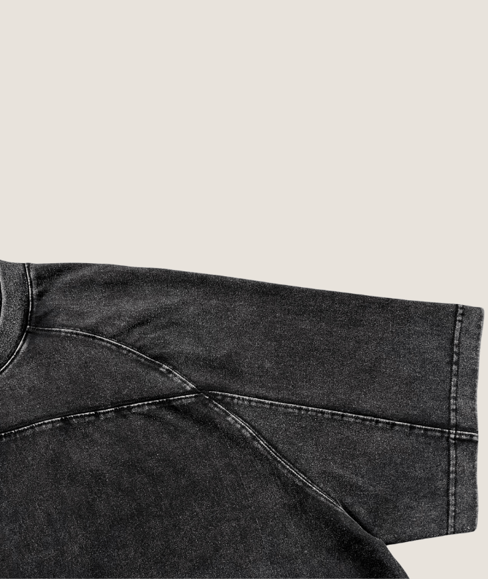 Crafted in structure. The VT Seamline Tee features a washed finish and visible panel construction that shapes a relaxed, boxy frame. This piece carries weight, durability, and presence.