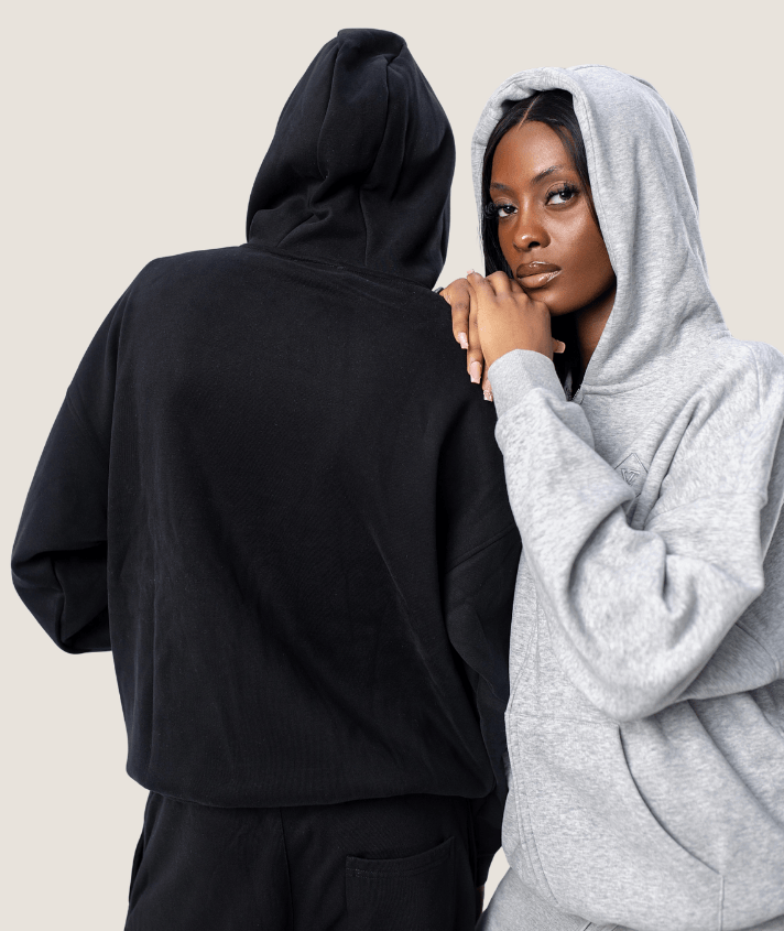 Seasonless zip hoodie defined by its structured silhouette and embroidered Vitalien chest mark. Built with a smooth fleece finish and clear metal zipper, it embodies quiet luxury with lasting comfort