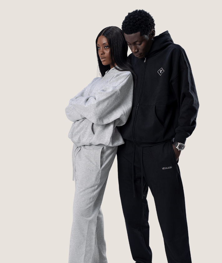 These sweatpants combine structure and comfort. The heavyweight build creates a defined drape, while the embroidered Vitalien mark delivers quiet precision.